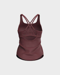 Ladies CrissCross Strappy Back Scallop Bottom Tank Top - Red