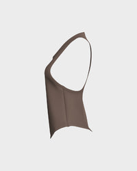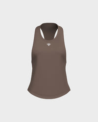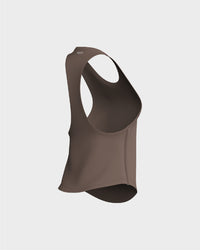 Ladies Dropped Armhole Racer Back Scallop Bottom Tank Top - Beige