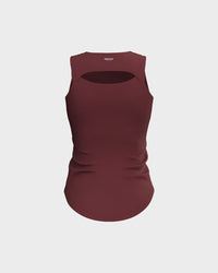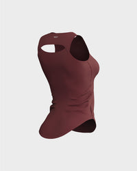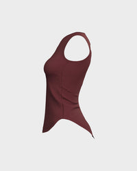 Ladies Overlapping Back Cut Out Scallop Bottom Relaxed Tank Top - Red