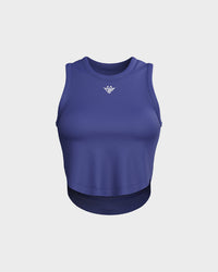 Ladies Relaxed Scallop Bottom Crop Tank Top - Blue