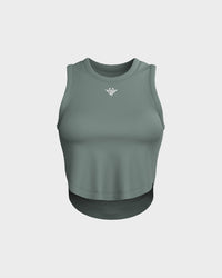 Ladies Relaxed Scallop Bottom Crop Tank Top - Green